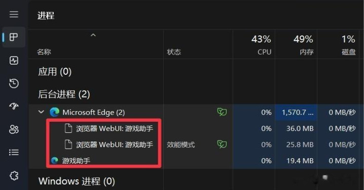 它后台开59个进程这事,我真亲眼数过。打开一个知乎页面,任务管理器里Edge进程占满两屏,内存飙到2100MB,关掉所有标签页,数字纹丝不动。装了uBlock Origin Lite后更离谱——扩展被限制,但Edge自己塞了个“游戏助手”进Game Bar,哪怕你从没点开过游戏,它也挂着,占着CPU,还带推送。